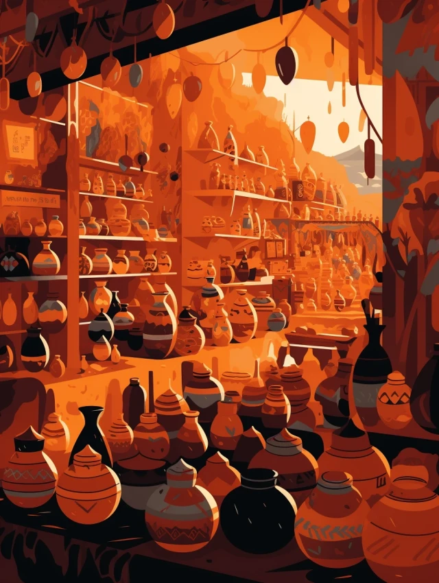 The air is thick with the aroma of spices, fresh fruits, and flowers, and the sounds of vendors hawking their wares blend together in a lively cacophony. The stalls are adorned with vibrant textiles and trinkets, and each vendor competes to attract customers with their unique offerings. Shoppers can find anything from handcrafted jewelry and ornate textiles to fresh produce and exotic spices. The marketplace is a hub of activity, with locals and tourists alike browsing and haggling for the best deals.