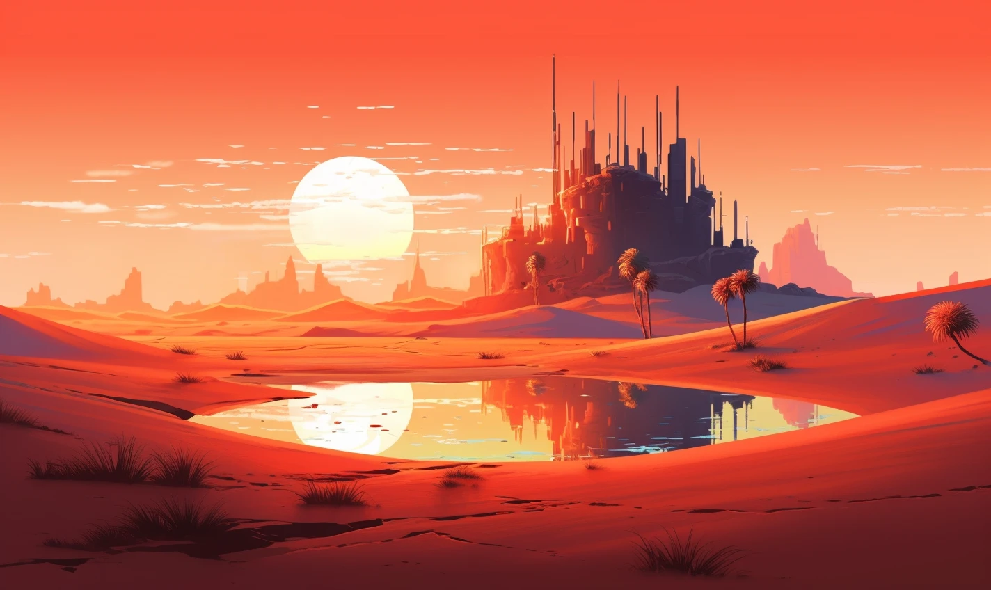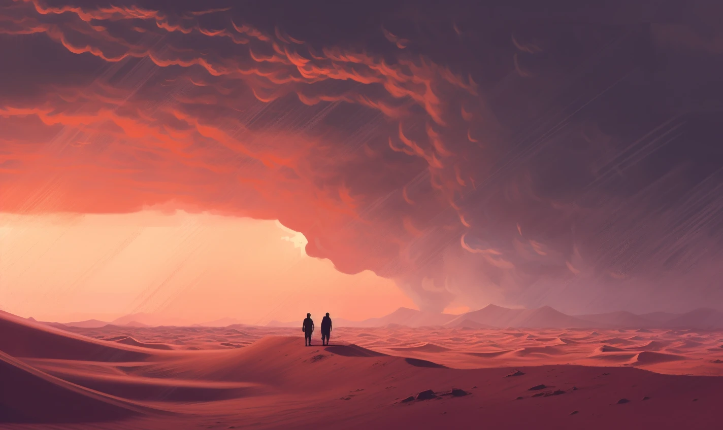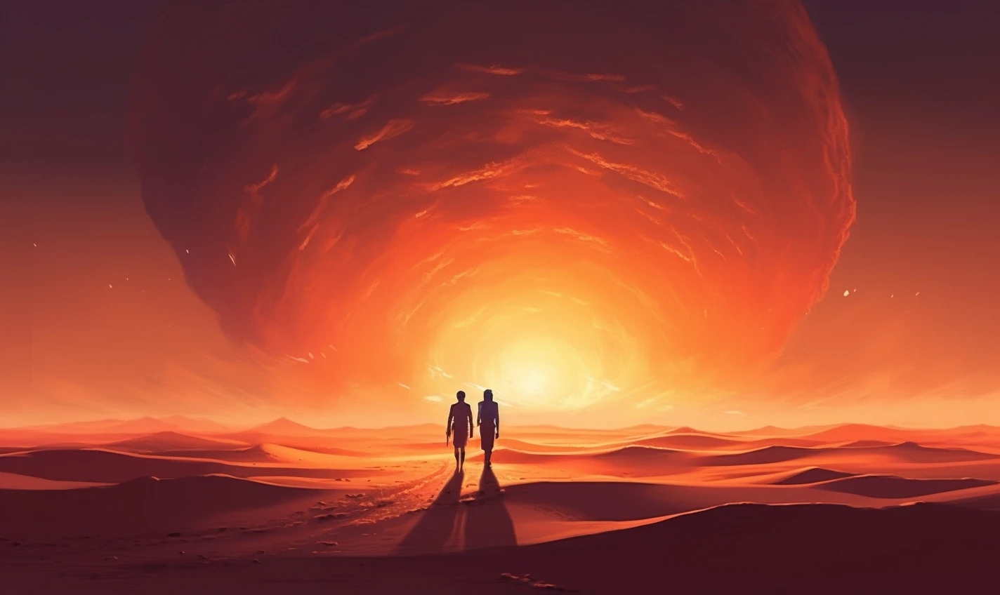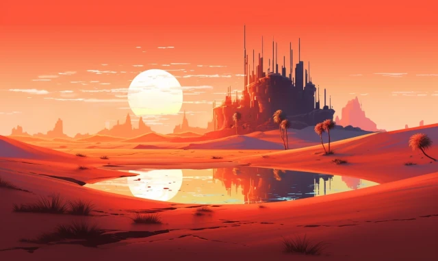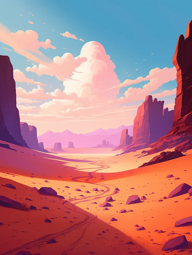 The relentless sun casts an intense glow over a stunning and unforgiving landscape. Towering sand dunes rise like colossal waves, their golden peaks shimmering under the blazing sun. This evocative scene captures the harsh beauty and unyielding spirit of the desert, where nature's extremes paint a mesmerizing canvas of contrasts, inviting adventurers to explore its secrets and challenges.